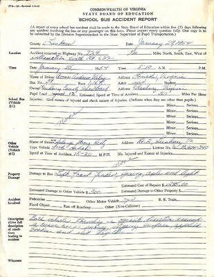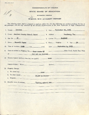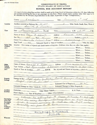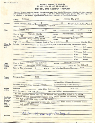 Primary documents related to transportation 5.8 Colored Field Trips 12-2 Bus Drivers 12-3 Routes 12-4 Bus Inventories 12-5 Shelter 12-6 Garage and Maintenance 12-7 Accidents and Safety 12-8 General and Cost Figures 12-9 New Buses