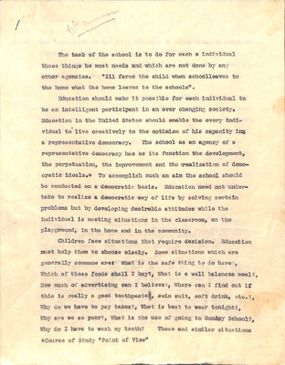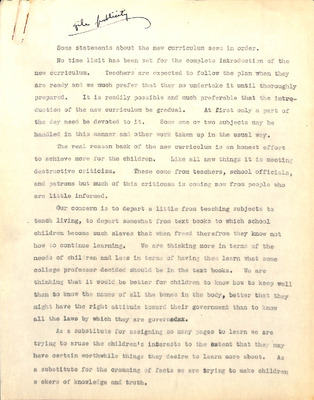 EWP 5-2 Yr 1930's Some Statement on New Curriculum