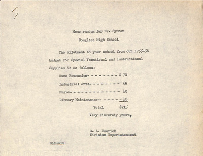 EWP 5-2 Yr 1955-56 Douglass HS Special Vocational and Instructional Supplies
