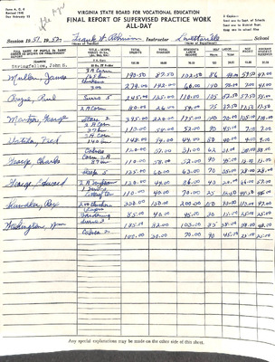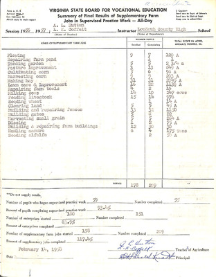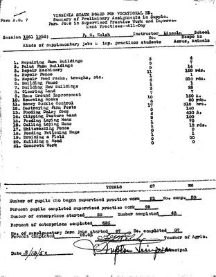 EWP 5-2 Yr 1951 52 Lovettsville Ag Vocational Ed
