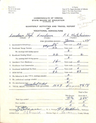 EWP 5-2 Yr 1953 54 Lovettsville Ag Vocational Ed