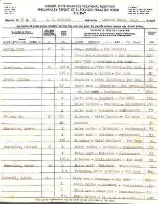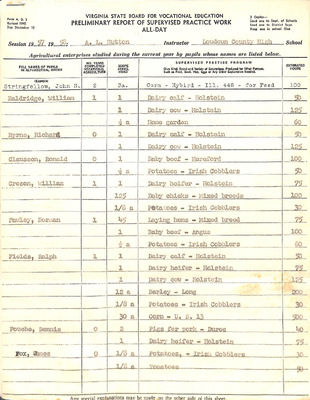 EWP 5-2 Yr 1957 58 Loudoun County High Ag Vocational Ed