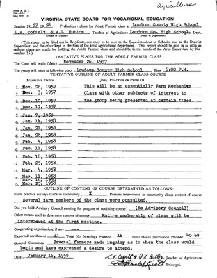 EWP 5-2 Yr 1957 58 Loudoun County HS Farm Mechanics to Adults Ag Vocational Ed