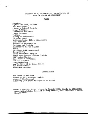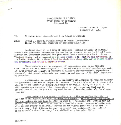 EWP 5-2 Yr 1951 Feb Suggested Teaching Outlines in Va History and Government