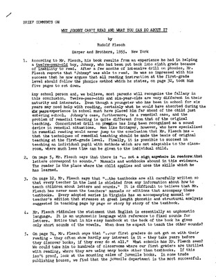 EWP 5-2 Yr 1955 Criticism of Rudolf Flesch book on Why Johnny Cant read