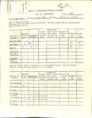 EWP 5-2 Yr Early 1940s Home Ec Aldie High School