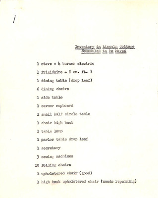 EWP 5-2 Yr 1954 Abt Lincoln Cottage Inventory