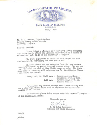 EWP 5-2 Yr 1960 July Workshop on Production of Math Course Univ of Virginia