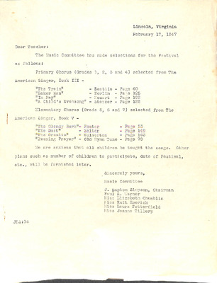 EWP 5-2 Yr 1947 Feb 17 Lincoln Music Committee Report