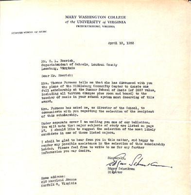 EWP 5-2 Yr 1953 Music Scholarship Middleburg Community Center