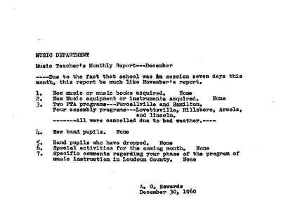 EWP 5-2 Yr 1960 Dec Music Department Monthly Report