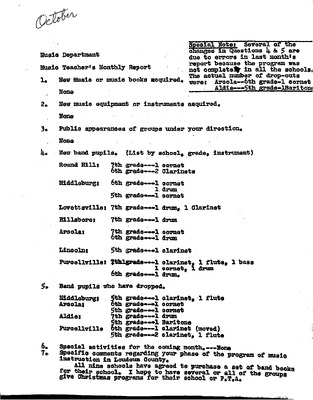 EWP 5-2 Yr 1960 October Music Departyment Monthly Report