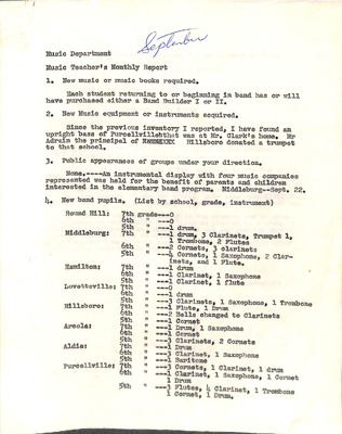 EWP 5-2 Yr 1960 Sept Music Department Monthly Report