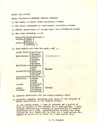 EWP 5-2 Yr 1961 Jan to March Music Department Monthly Reports