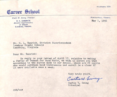 EWP 5-2 Yr 1956 May Carver School School Band Requirements
