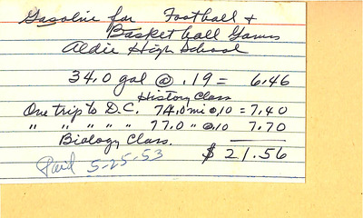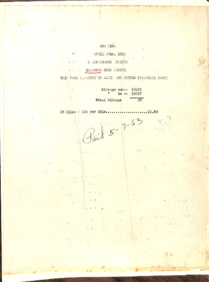 EWP 05-3 Yr 1953 Invoices for Field Trips from Leesburg HS to Washington DC and Aldie April and May 1953 invoices and payments for school bus trips in support of high school baseball, football and basketball games, and a trip to The Smithsonian and the Capital. -