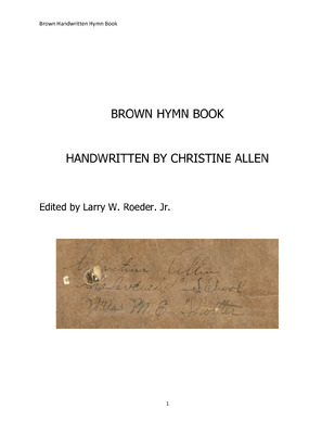 EWP 05-2 Yr. 1920' 30's. Brown Hymn Book by Christine Allen This text is not an LCPS record. it is a collection of handwritten hymns and songs found in the archives of the Prosperity Baptist Church, mostly associated with Christmas. The author, Christina Allen, was a local figure in Conklin and the church secretary. The hymn book contains 18 pieces, including well-known compositions by Handel, Verdi, and other composers. Some pieces have historical significance, such as the anthem of the City of Dublin and a patriotic hymn popular among school children in the 1920s and 30s. The book also includes variants of original texts, along with historical information about the authors and songs. Overall, the "Brown Hymn Book" provides insight into the music and cultural context of the time, offering a glimpse into the religious and patriotic sentiments of that era. A summary of the material can be found in the 2023-2024 Edition of the Bulletin of Loudoun County History, found in the Balch Library. -