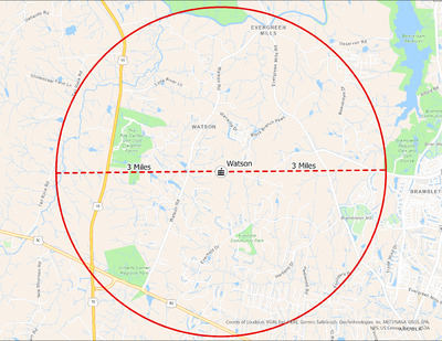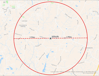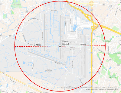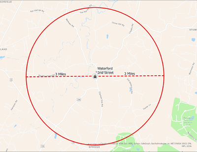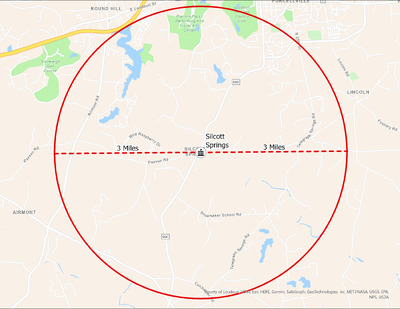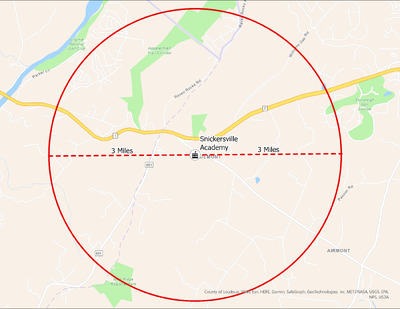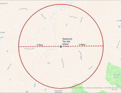 It's estimated that the maximum distance students would have walked to this school is 3 miles one way. The graphic shows the area from which students may have walked to this school.
