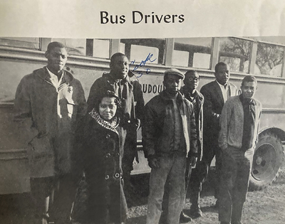 Douglass High Student Bus Drivers A Black Student Bus Drivers - Back row - William Pollard, Sterling Cook, Paul Vincent, Lawrence Reid; Front Row - Mrs. Boyd (not a driver), James Long, Stephen Scott (From 1965/1966 Douglass High School Year Book 'The Ram' page 61)