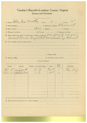 EWP 4-5 Helen Adrian Howser 00101 Employment Card