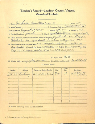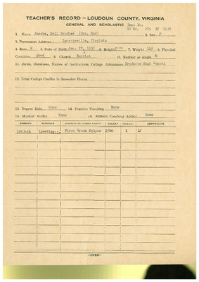 EWP 4-5 Yr 1953 1954 Nell H. Jacobs Employment Card -