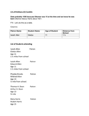 EWP 2-5A Petitions (C) Conklin list of students age distance