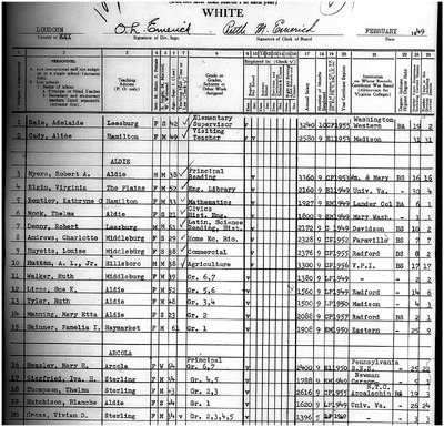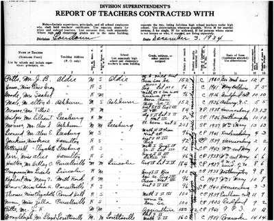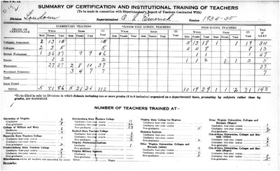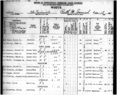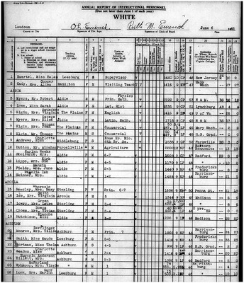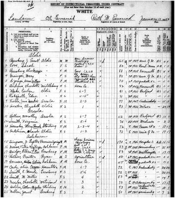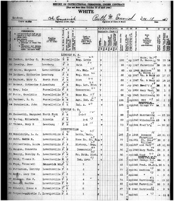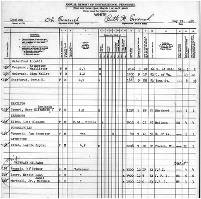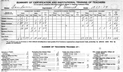 EWP 4-7 Yr. 1953 TeacherExam1900001 Superintendent Emerick took an examination which was given to those seeking to acquire a Virginia State Teacher Teachers Certificate in 1900. He sent it to Mathematics Teachers in grades 8 to 12 and requested they grade it. The purpose of him taking the test was to compare standards and to check reliability of tolerance.