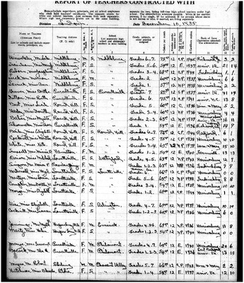 EWP 4-14 Yr 1933-1942 Salaries Teacher Salaries