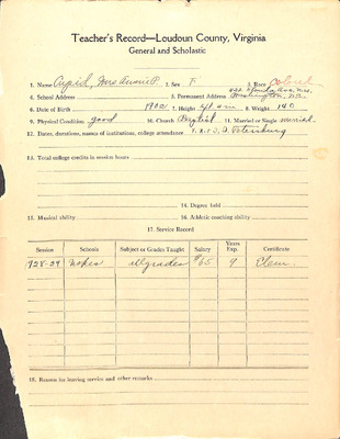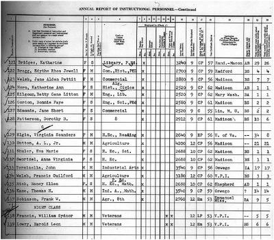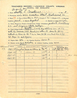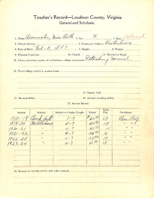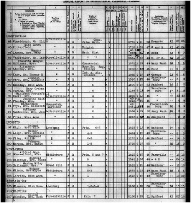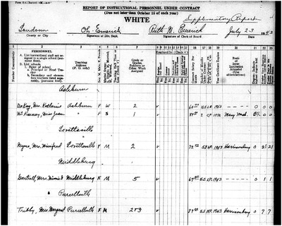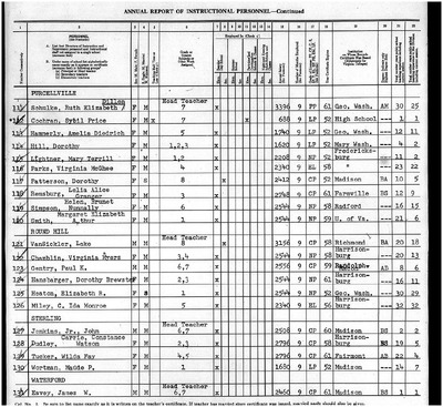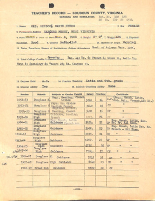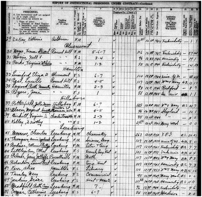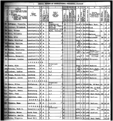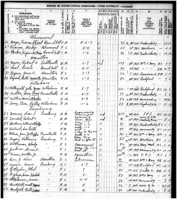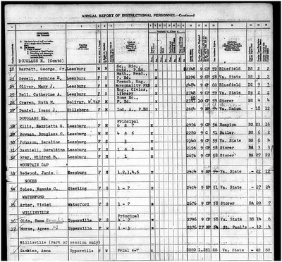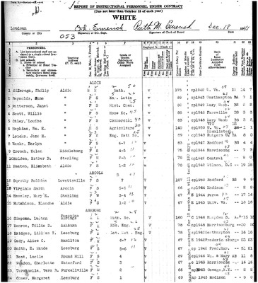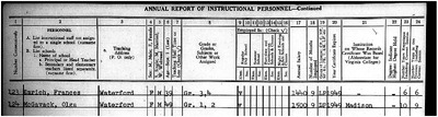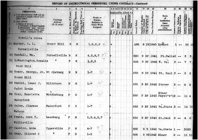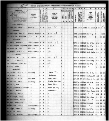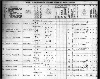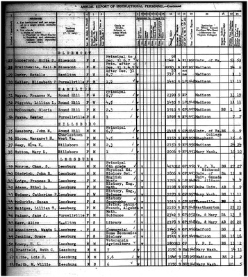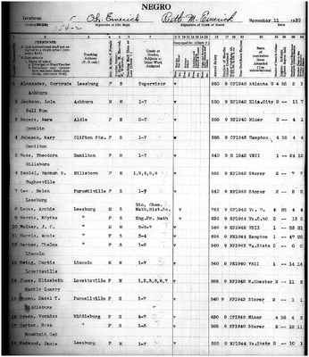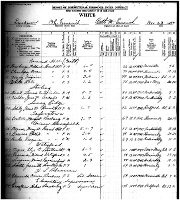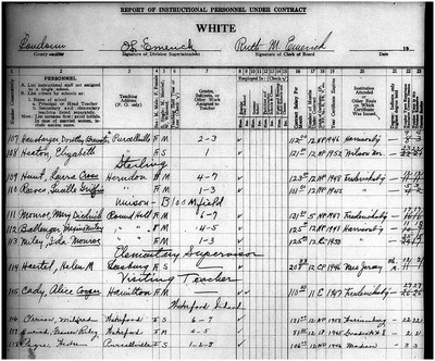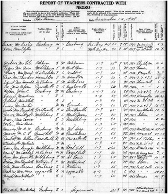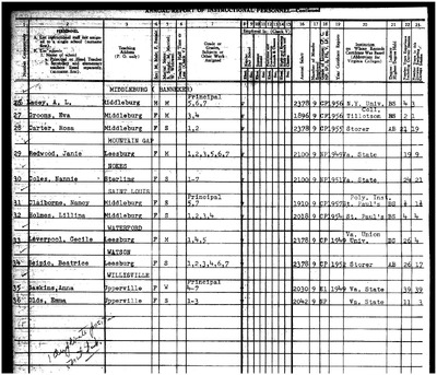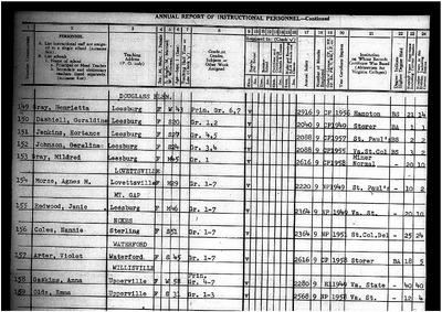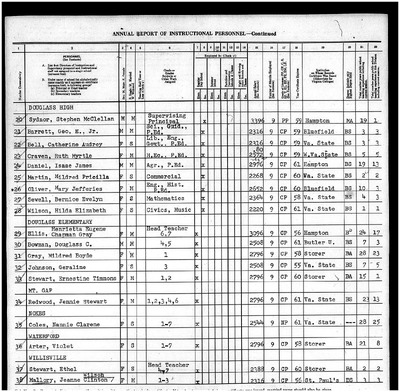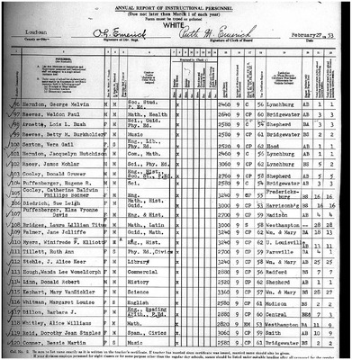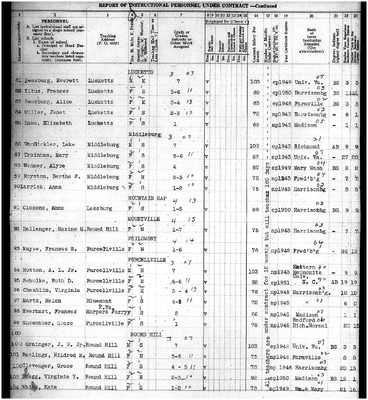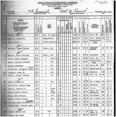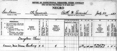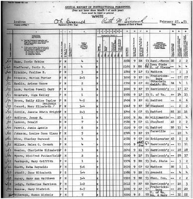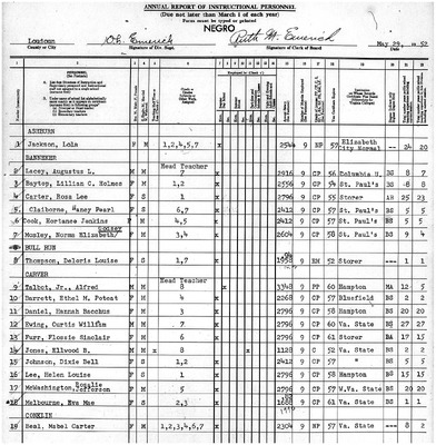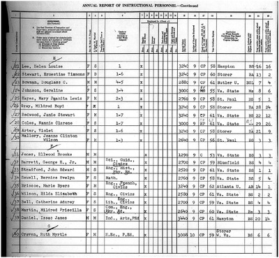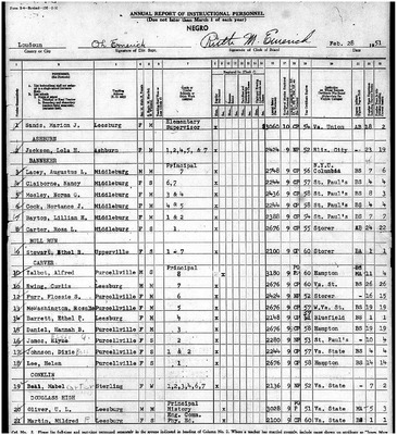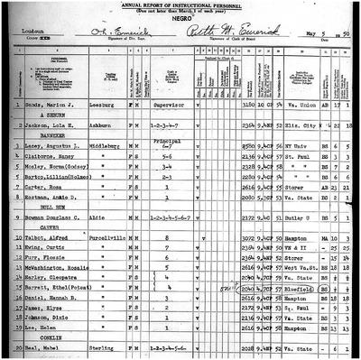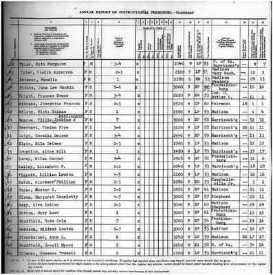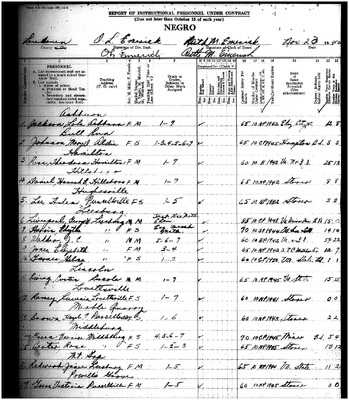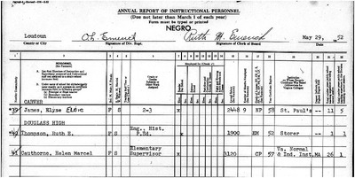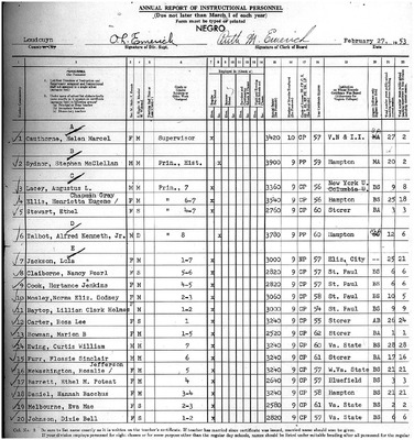 EWP 3 Annual Report of Instructional Personnel_1953 Annual report of Negro teachers that includes grades taught, salaries, year certificate expires, college, degree held, total number of years of public teaching experience. -