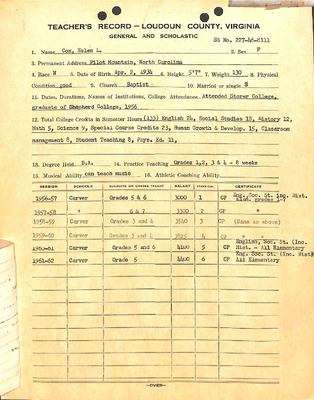 EWP 4-5 Helen L. Cox Employment Card for Helen L. Cox -