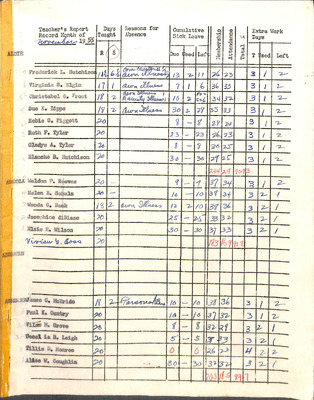 EWP 4-6 Yr 1955 Nov Faculty Absence Reports Faculty Absence Reports for White and Colored Schools -