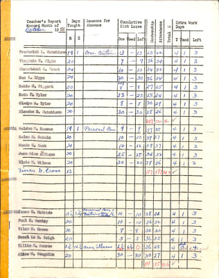 EWP 4-6 Yr 1955 Oct Faculty Absence Reports Faculty Absence Reports for White Schools -