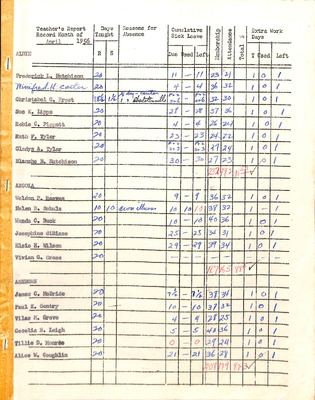 EWP 4-6 Yr 1956 Apr Faculty Absence Reports Faculty Absence Reports for White and Colored Schools -