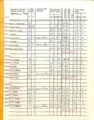EWP 4-6 Yr 1956 Jan Faculty Absence Reports Faculty Absence Reports for White and Colored Schools -