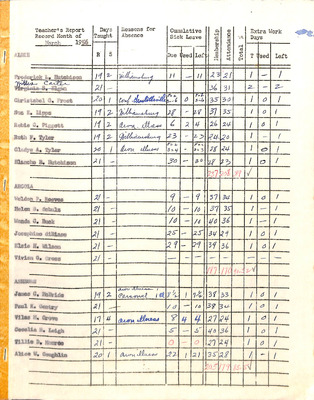 EWP 4-6 Yr 1956 Mar Faculty Absence Reports Faculty Absence Reports for White and Colored Schools -