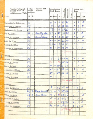 EWP 4-6 Yr 1956 May Faculty Absence Reports Faculty Absence Reports for White and Colored Schools. -