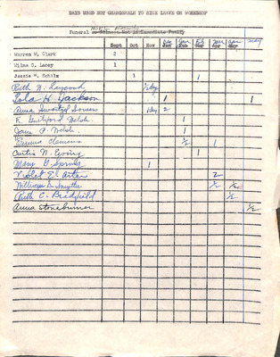 EWP 4-6 Yr U Days Used for Funerals Record of days not chargeable to sick leave or workshop for funerals not in family from September to May. -