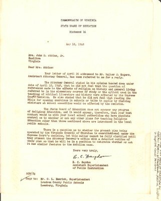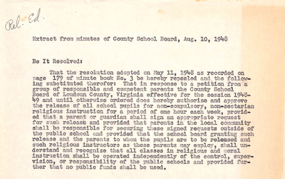 - EWP 1-3 Yr 1948 7-13 Superntendent of Virginia on Weekday Religious Instruction