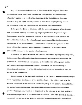 EWP 1-4-3 Yr Abt 1956 Virginisa Education Association Supports Segregation