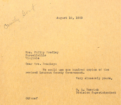 EWP 15-14 Yr 1953 Better Gov Club Request for 100 copies of revised LC Government