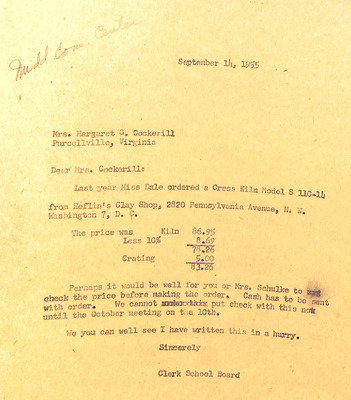 EWP 5-5-1 Yr 1955 Purchase of Kiln For Clay Instruction