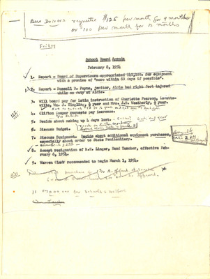 EWP 02-2 February 8, 1954, School Board Meeting Agenda and Minutes February 8, 1954, School Board Meeting Agenda and Minutes. Topics include bus driver salaries, resignation, school bus transportation statistics. - EWP2-2Yr19542-23SalaryEqualizationFund