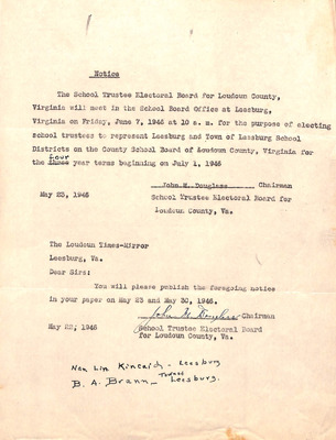 EWP2-3Yr1946MayNoticeofJune7ElectoralBoardMeetingtoappointLeesburgTrustees