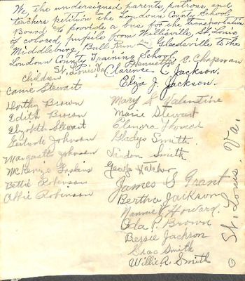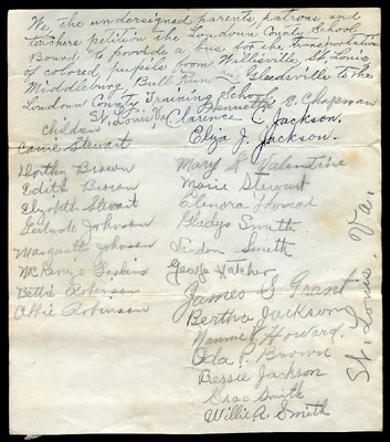 DUPLICATE FILE DUPLICATE FILE (EWP 02-5 A Yr 1930s Petition for school bus transportation for colored students to the Loudoun County Training Center) -