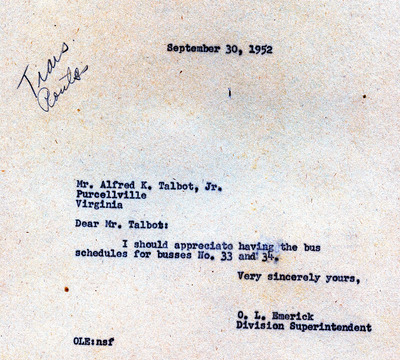 DUPLICATE FILE DUPLICATE FILE ('EWP 12 School Bus Route Cover Page Purcellville 1952')