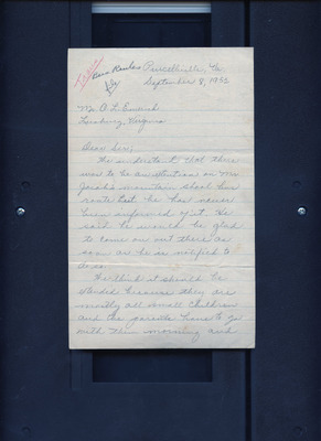 DUPLICATE FILE DUPLICATE FILE (EWP 02-2 Yr 1952 Letter requesting school bus route extension for Bus 20 (O.L. Jacobs school bus driver) - page 1)