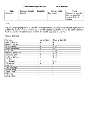 DUPLICATE FILE DUPLICATE FILE (EWP 02-5B Yr 1924 Petition for school bus to Round Hill High School for Bluemont students)