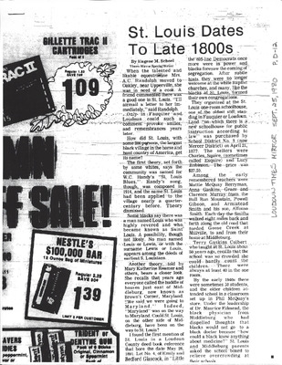 Pg 2 PTA of Middleburg complains that Emerick chose badly when picking new location of colored school in Saint Louis, replacing the Grant School in Middleburg. Led by Dr. Edmead, the members wanted Maxville property along Rt 50 owned by William Hall.