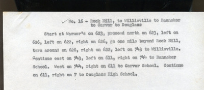 EWP 03 Yr 1952 School Bus Routes All Races (Rock Hill to Willisville to Banneker to Carver to Douglass High) (Bus # 16) 1952 School Bus Routes All Races (Rock Hill to Willisville to Banneker to Carver to Douglass High school) (Bus # 16) - EWP 6-6 Willisville C Grades 1 to 7 Yr 1917 to 1959