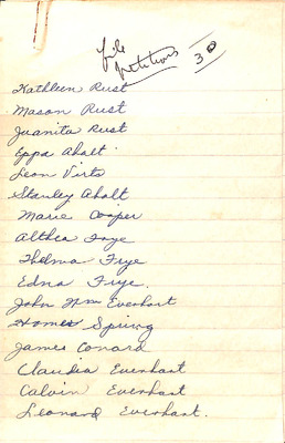 EWP 2-5A Petition Conklin Signatures of Patrons- Teacher Complaint1935 This document contains signatures of patrons from an 1935 petition. This appears to be a continuation of File 101341 EWP 2-5A Petition Conklin Teacher Complaint. Signatures and ages of students are included in this document.